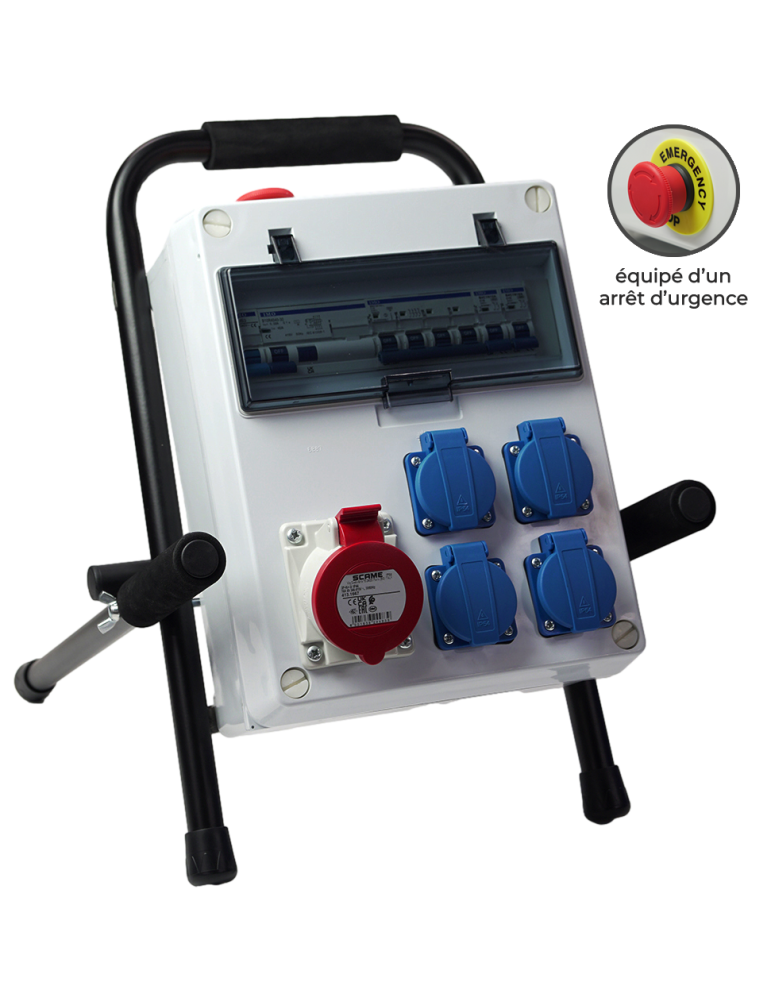 - Equipé d'un interrupteur différentiel 4P 63A 30mA