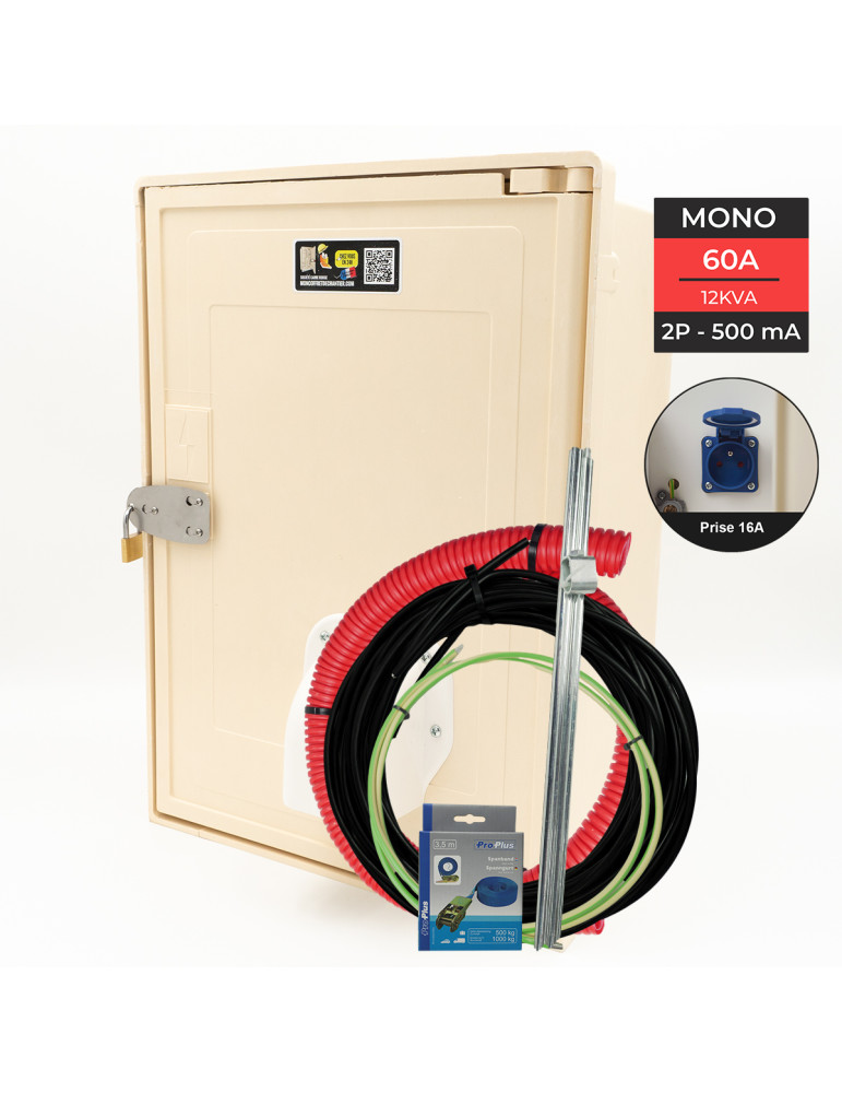 Coffret monophasé "Speed24" complet 12 KW avec prise 16 Ampères