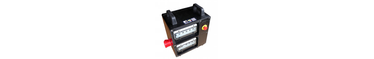 Coffret de distribution sur prises 16A domestiques avec protections et véritable arrêt d'urgence sur bobine MX