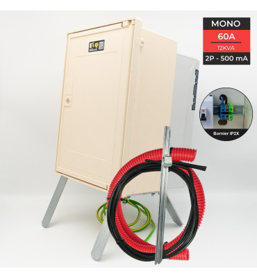 Les compteurs de chantier monophasés sont recommandés pour des installations de faibles et moyennes puissances. Le coffret de chantier monophasé est idéal pour les chantiers de constructions de maisons individuelles et branchements forains. La puissance est 12Kw en 230 Volts tarif bleu.