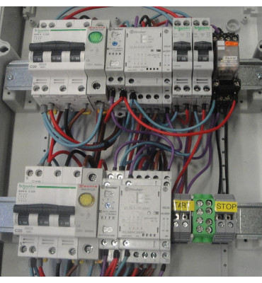 - 2 contacteurs 4P 63A + protections bobines enclenchement par disjoncteur Ph/N 6A 6kA courbe C
