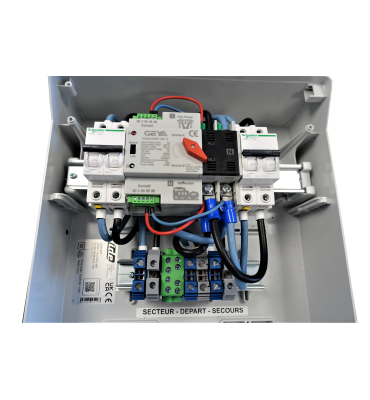 Coffret inverseur de source automatique pour commutation en cas de défaut du réseau ERDF sur le groupe de secours ou sur des batteries .