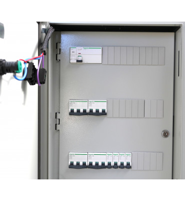 Cette armoire compacte présente l'énorme avantage de combinée le comptage triphasée et la distribution sur prises .