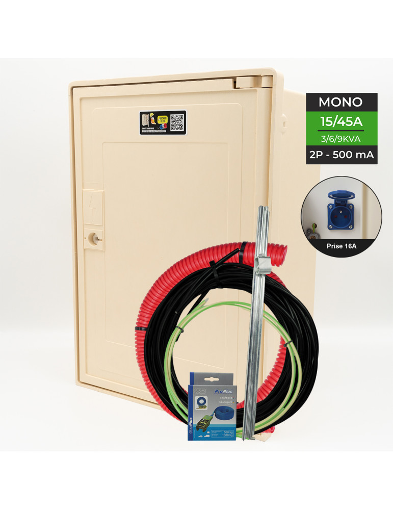 Coffret monophasé "Speed24" complet 3/6/9 KW avec prise 16 Ampères