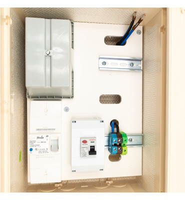 - rail Oméga pour fixation du compteur (compteur fourni par le fournisseur d'énergie)